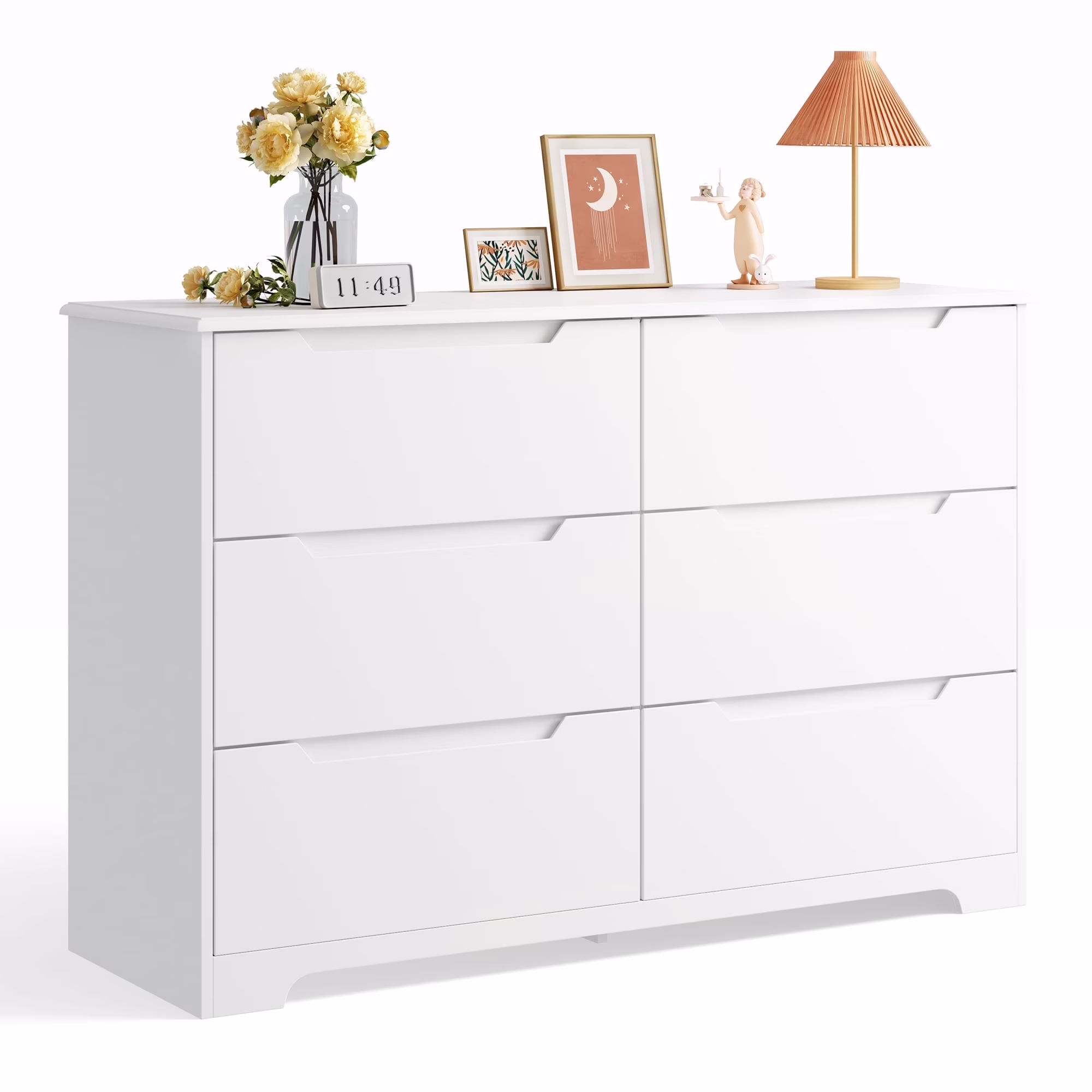 Aiho 6-Drawer Double Dresser - Modern Wood Chest with Anti-Tip Safety, Cutout Handles & Smooth Gliding Drawers | Nursery, Kids & Bedroom Storage - White