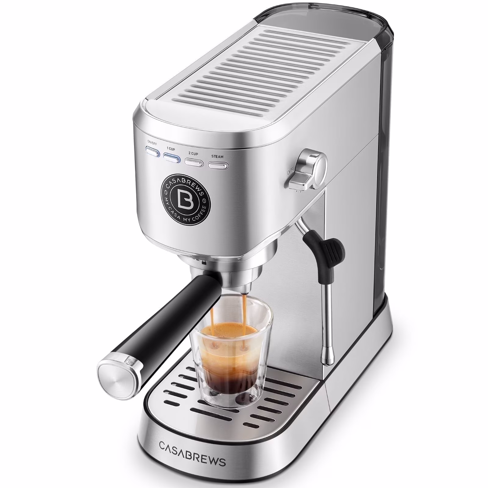 CASABREWS 5418Basic Espresso Machine with 20-Bar pressure, 34 oz Water Tank, with Milk Frother, Silver