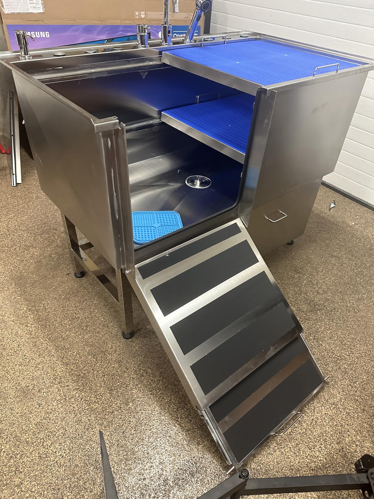- 50" UTILITY & GROOMING STATION - KANIS Proudly introduces The most Complete and Versatile dog bathtub! Suitable for general home cleaning and pet washing, our grooming sink is a must-have in a multi-functional utility room, laundry, or garage. Superior Quality, Durable & Rust-resistant 304 Stainless Steel, No Leak Fully Welded Construction and Easy to install.