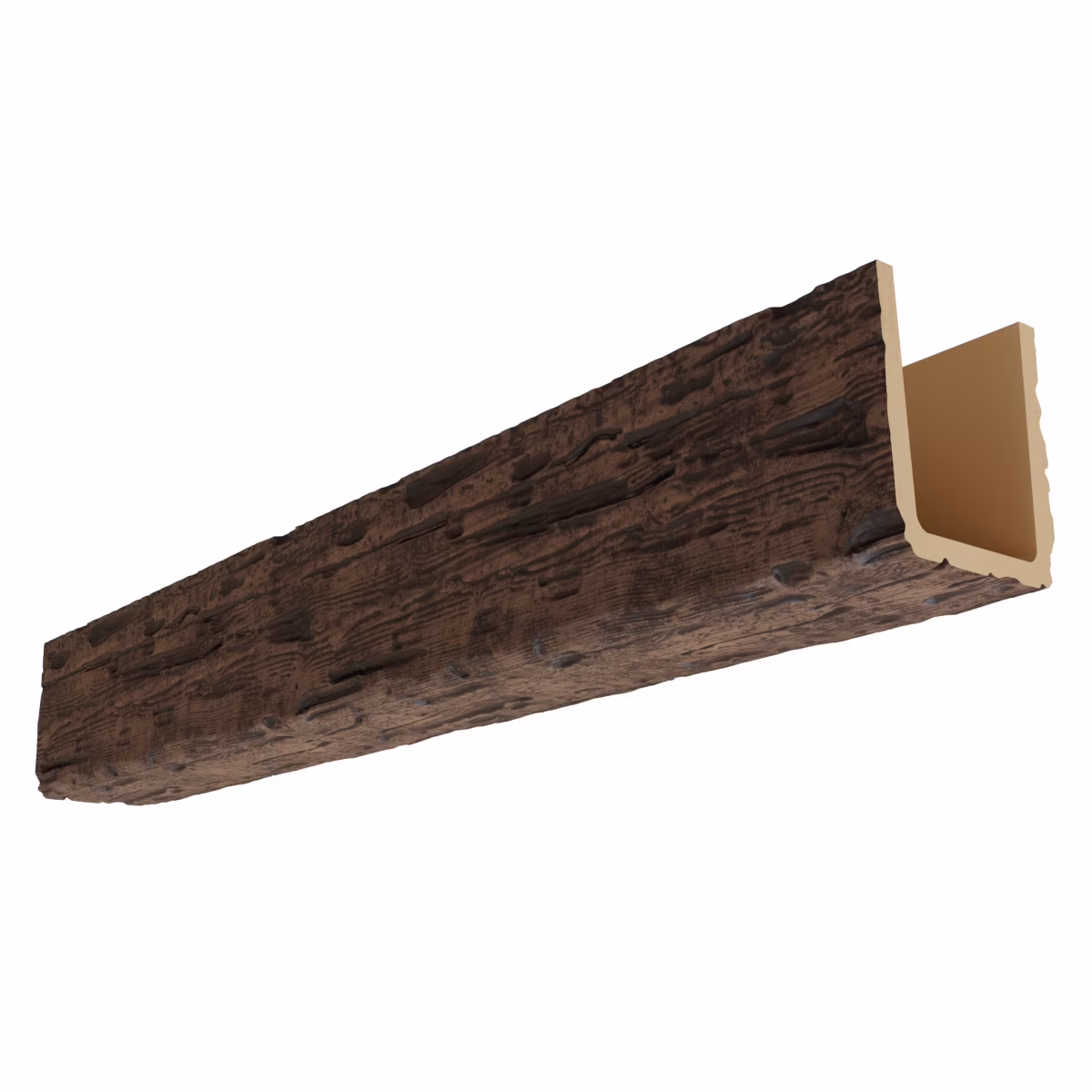 Ekena Millwork 3 1/2"W x 3 1/2"H x 120"L 3-Sided (U-Beam) Salvaged Timber HeritageTimber Faux Wood Ceiling Beam, Kona Brown