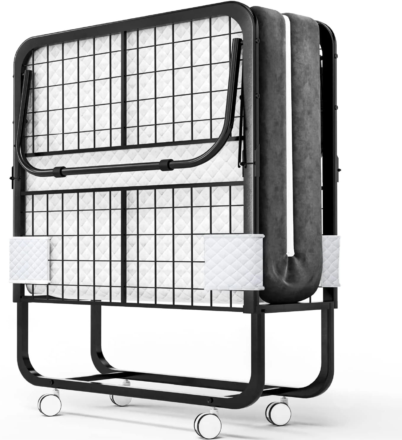 EconoHome Folding Bed with Mattress - 75x31 Cot Size Bed Frame - Portable Foldable Roll Away Adult Bed for Guest - 5-inch Thick Memory Foam Cot Mattress - Space Saving Fold Up Bed for Easy Storage